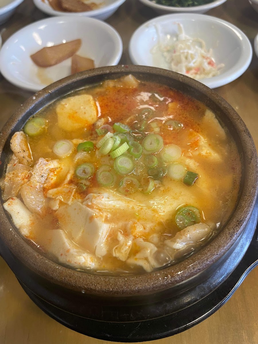 “ We came here for lunch. We had the lunch special menu which included a small tofu soup (with few different choice of meats or veggies) and a meat side dish. Price was $19.90 before tax. I ordered the Korean short rib as a meat side dish ($4 more) and my friend ordered the pork bulgogi. For the tofu soup we both chose chicken. The soup and the meat were well seasoning. They were neither too salty nor too bland, just right to the taste. The short ribs were a little fat for me. The bulgogi was better. They can adjust the spiciness to your desire. The lady server was sweet and attentive. She refilled our free side dishes few times. The place was clean. I recommend this restaurant. ”