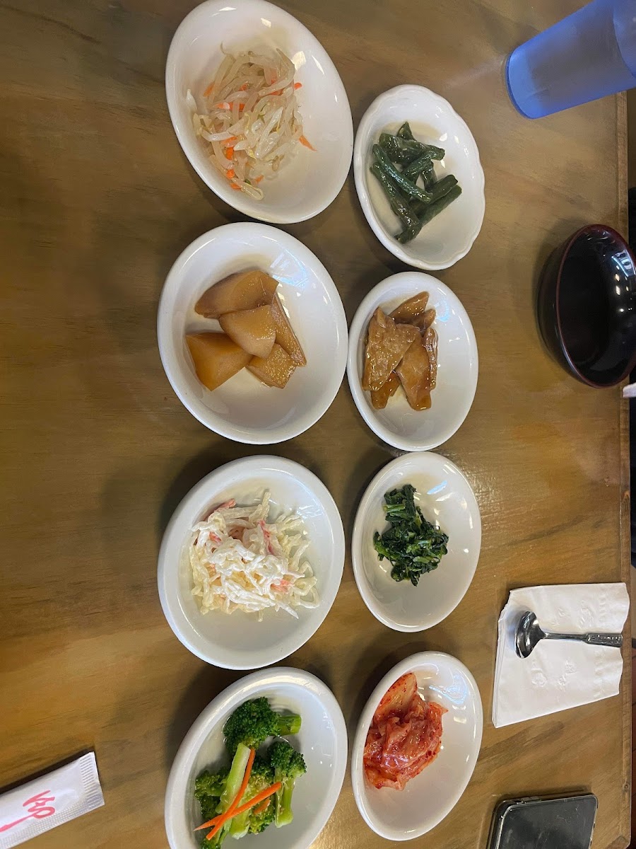 “ We went when it opened at 5pm on a Sunday when there were parking spots available on the street. The kimchi pancake is very good, not dry or too chewy. No meat or seafood inside so suitable for vegetarians too. The sweet potato cheese katsu is unique and tastes good. Tofu bibimbop has purple rice underneath. Stone’s temperature is just right. For the tofu stew, we choose seafood tofu soup with beef short rib. Both are delicious. The only downside is when we leave, the restaurant is fill with cooking smells. Probably the ventilation is not working properly. ”
